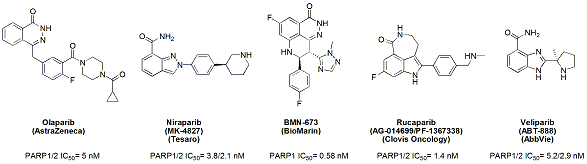 在晚期臨床開發(fā)的PARP抑制劑的化學結構和體外活性