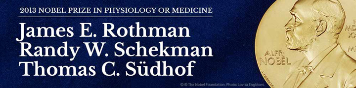 10月7日,2013年諾貝爾獎(jiǎng)生理學(xué)或醫(yī)學(xué)獎(jiǎng)在瑞典卡羅琳醫(yī)學(xué)院揭曉,獲獎(jiǎng)?wù)邽槿耍謩e是:美國(guó)耶魯大學(xué)的詹姆斯?E?羅斯曼、加州大學(xué)貝克萊分校的蘭迪?謝克曼和斯坦福大學(xué)的托馬斯?聚德霍夫。表彰他們對(duì)細(xì)胞內(nèi)囊泡運(yùn)輸研究的貢獻(xiàn)。