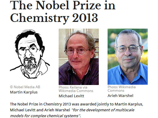 2013年諾貝爾化學(xué)獎10月9日在瑞典揭曉,美國科學(xué)家馬丁?卡普拉斯(Martin Karplus)、邁克爾?萊維特(Michael Levitt)及亞利耶?瓦謝爾(Arieh Warshel)因為對計算結(jié)構(gòu)生物學(xué)的貢獻而共享殊榮。按照評獎委員會的話說“這幾位科學(xué)家為復(fù)雜化學(xué)系統(tǒng)創(chuàng)立了多尺度模型,把計算機模型應(yīng)用于化學(xué)研究,開拓了嶄新研究領(lǐng)域”。