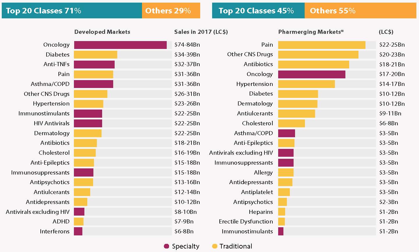 上表:全球醫(yī)藥銷售額的分布,數(shù)據(jù)來源于IMS 2013年報告