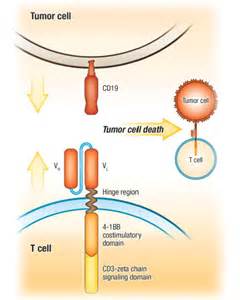 諾華公司的CTL019是一種強效免疫細胞療法。醫(yī)務人員通過采血從患者獲得部分T細胞,然后在實驗室把識別CD19的抗體偶聯(lián)到這些T細胞表面,由此形成帶有能攻擊B細胞表面CD19的嵌合抗原受體(chimeric antigen receptor,CAR)的免疫細胞。CTL019細胞在被輸回患者體內(nèi)能迅速增殖上千倍,并數(shù)月內(nèi)在患者體內(nèi)持續(xù)存在,可能有助于預防患者疾病的復發(fā)。