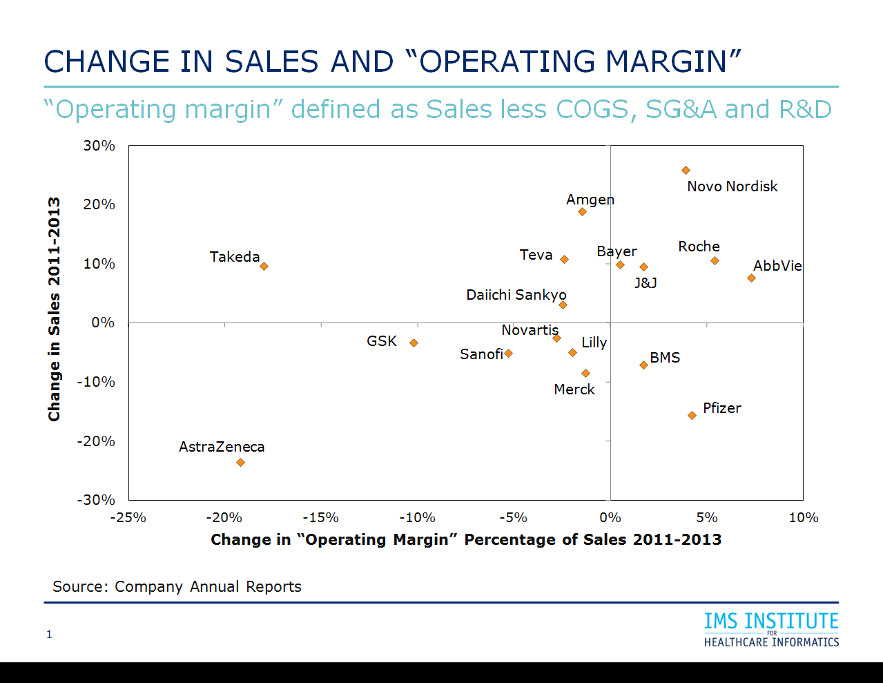 【新聞事件】:今天福布斯的分析家Matt Herper報(bào)道,根據(jù)IMS健康研究院負(fù)責(zé)人Murray Aitken提供的資料,阿斯列康是在銷售下降時(shí)通過(guò)裁員降低成本最保守的公司(見(jiàn)下圖),即阿斯列康還有很大的裁員空間。