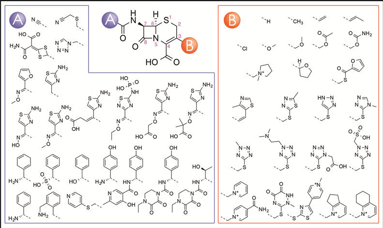 圖2、頭孢烯類δ內(nèi)酰胺抗生素化學結(jié)構(gòu)的多樣性