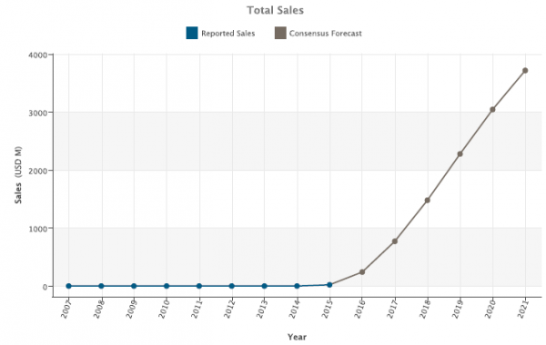 2016年4月,諾華公布的第一季度財(cái)報(bào)中:Entresto銷售不達(dá)預(yù)期,銷售收入1700萬美元,未達(dá)到預(yù)期的2000~3000萬美元。盡管銷售啟動(dòng)較慢,諾華預(yù)計(jì)Entresto銷售在2016年將達(dá)到2億美元,新一輪有力促銷及廣告攻勢(shì)將展開。